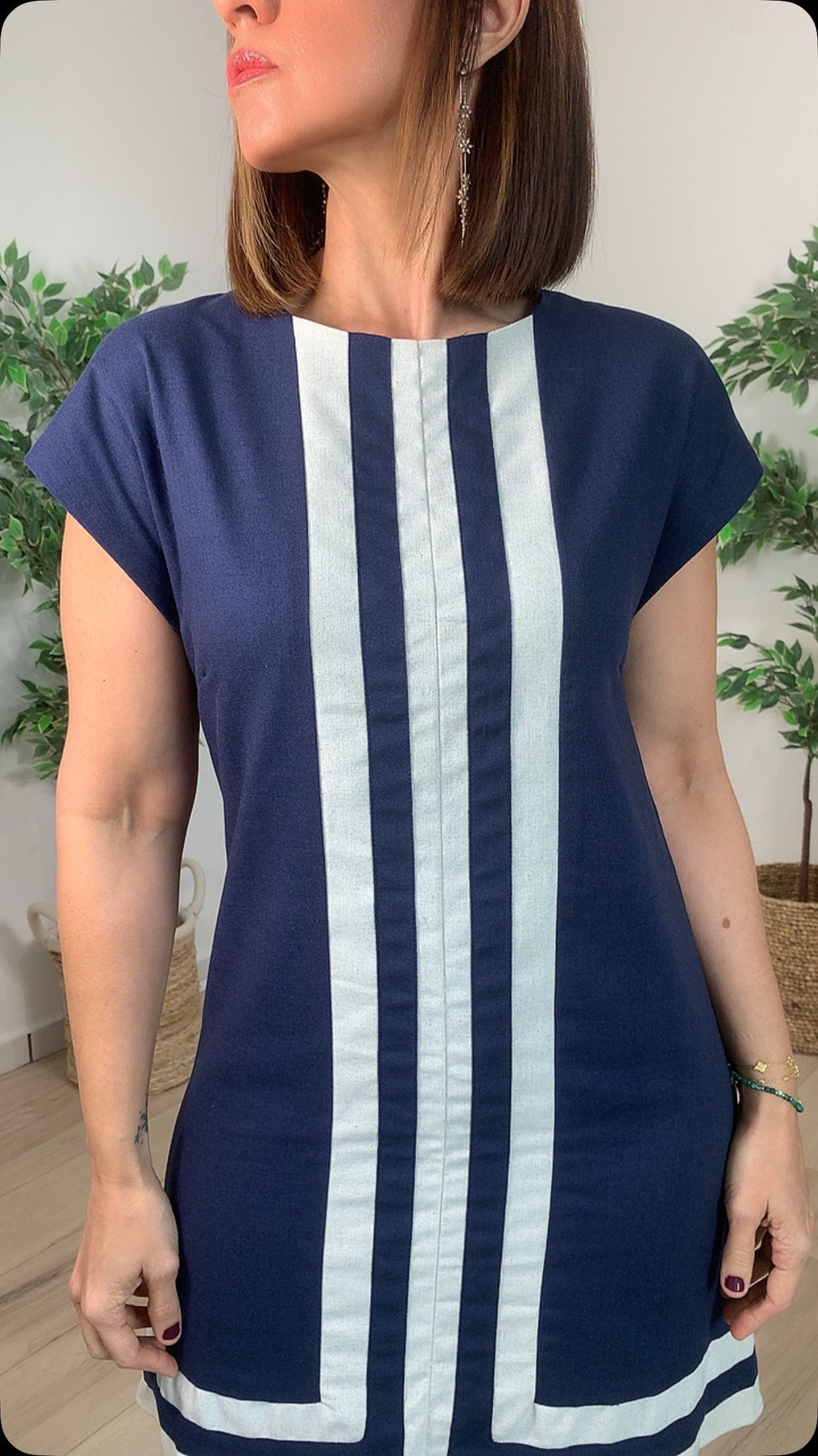 Elevate your everyday wardrobe with the Dádiva Navy Mini Dress—a timeless linen piece that effortlessly combines comfort and style. Featuring a classic round neckline and charming cap sleeves, this dress is accented with striking oatmeal stripe details that add visual interest. The fully lined construction ensures a smooth, flattering silhouette while the breathable linen fabric keeps you cool and comfortable all day long. Perfect for casual outings or dressed up for weekend adventures.