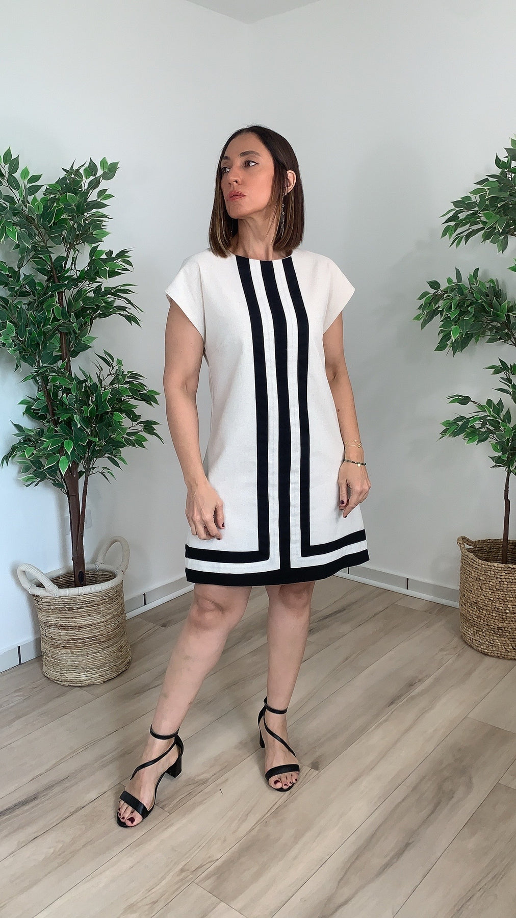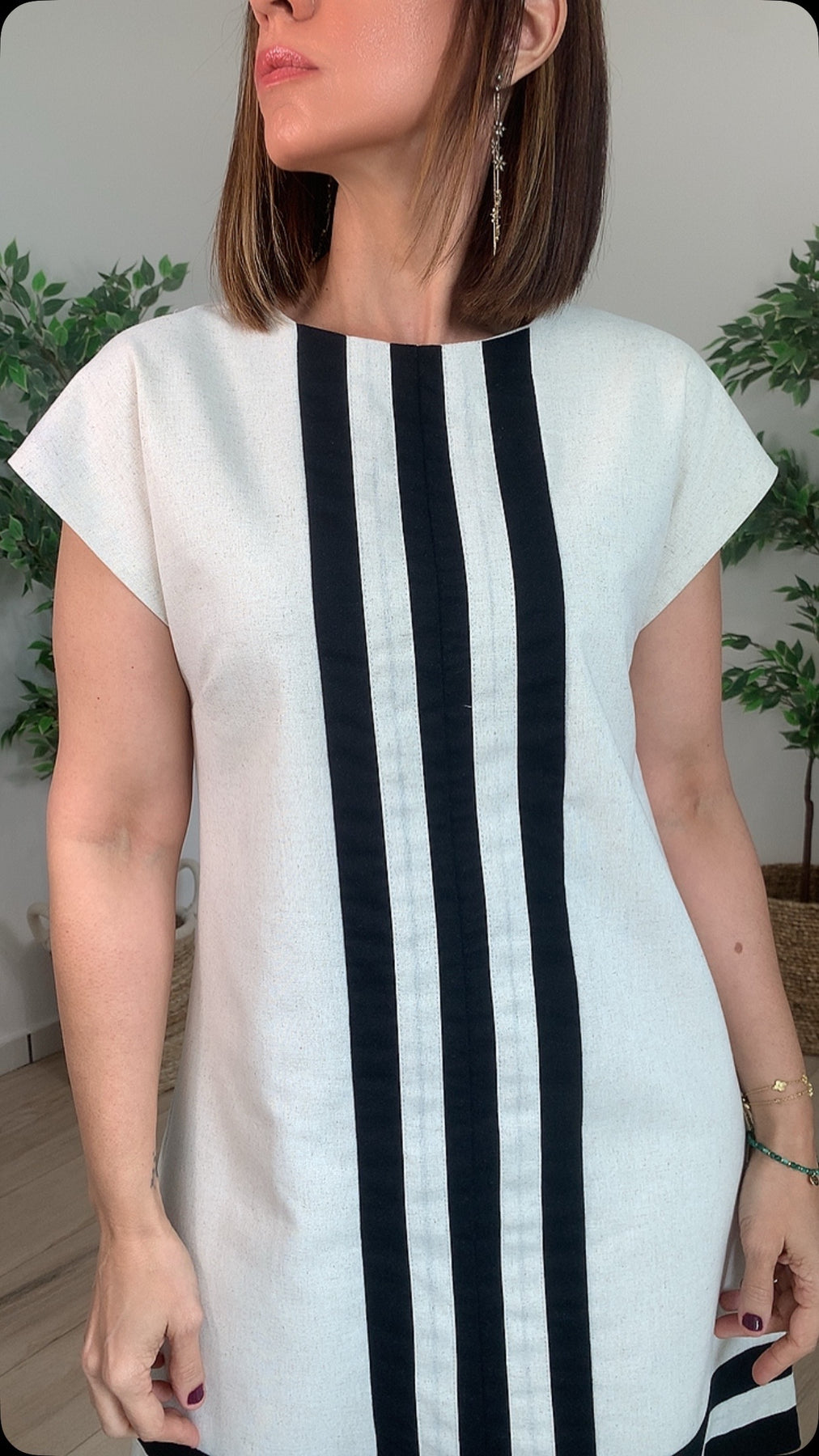 Elevate your everyday wardrobe with the Dádiva Oatmeal Mini Dress—a timeless linen piece that effortlessly combines comfort and style. Featuring a classic round neckline and charming cap sleeves, this dress is accented with striking black stripe details that add visual interest. The fully lined construction ensures a smooth, flattering silhouette while the breathable linen fabric keeps you cool and comfortable all day long. Perfect for casual outings or dressed up for weekend adventures.