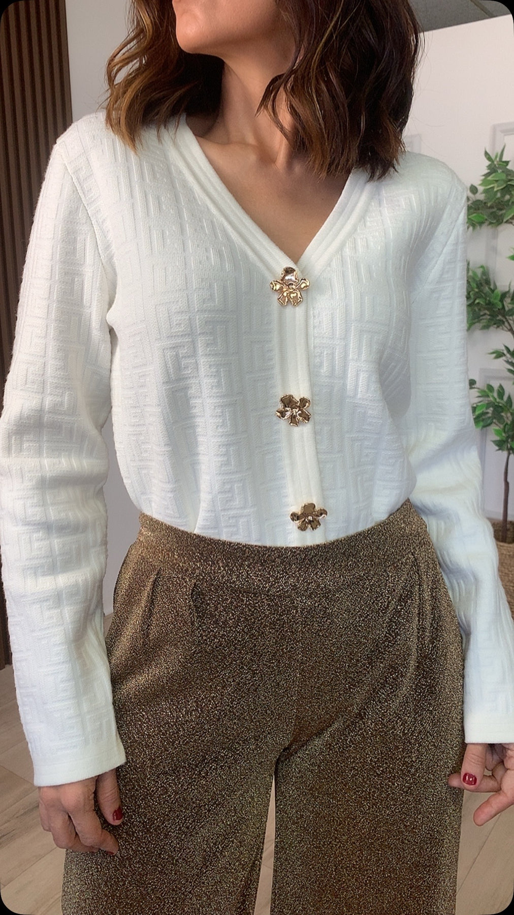 Transform your wardrobe with Glam Pants from our exclusive Joy Collection. These wide long trouser pants are designed with a dazzling gold shimmer, an elastic waistband, and pin tuck for maximum comfort. Elevate your style at any party with these glamorous pants.