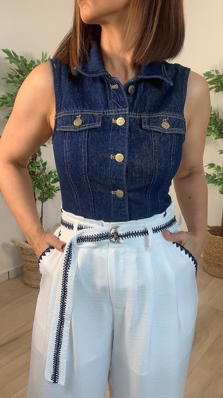 Elevate your wardrobe with these sophisticated Ser White Pants, featuring a flattering wide-leg silhouette that commands attention. The pintuck front detailing and delicate embroidery accents add refined character, while the belted waist creates a polished, intentional look. Crafted from textured crinkle fabric, these slacks offer effortless movement and a contemporary edge. Practical side pockets keep you organized, making these versatile pants perfect for both professional settings and elevated casual occasions.