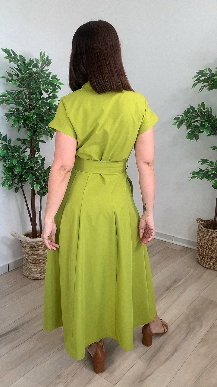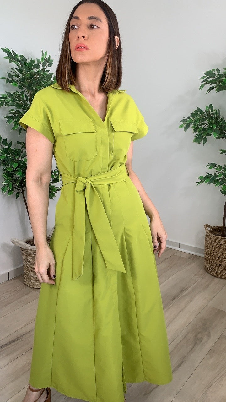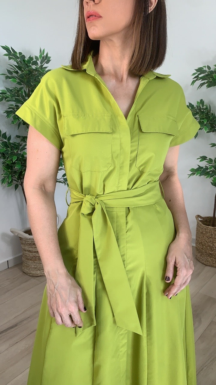 Discover effortless elegance with the Valor Midi, a versatile dress designed for the modern woman. This sophisticated midi features a flattering V-neck collar, a cinched waist tie belt that defines your silhouette, and convenient front pockets for everyday practicality. The button-down front adds timeless appeal while the vibrant lime hue brings fresh energy to your wardrobe. Perfect for transitioning from office to evening, this piece combines style with comfort for a look you'll reach for again and again.