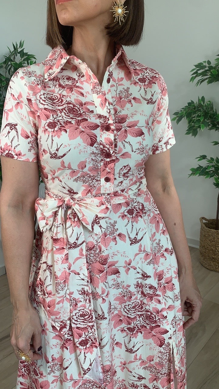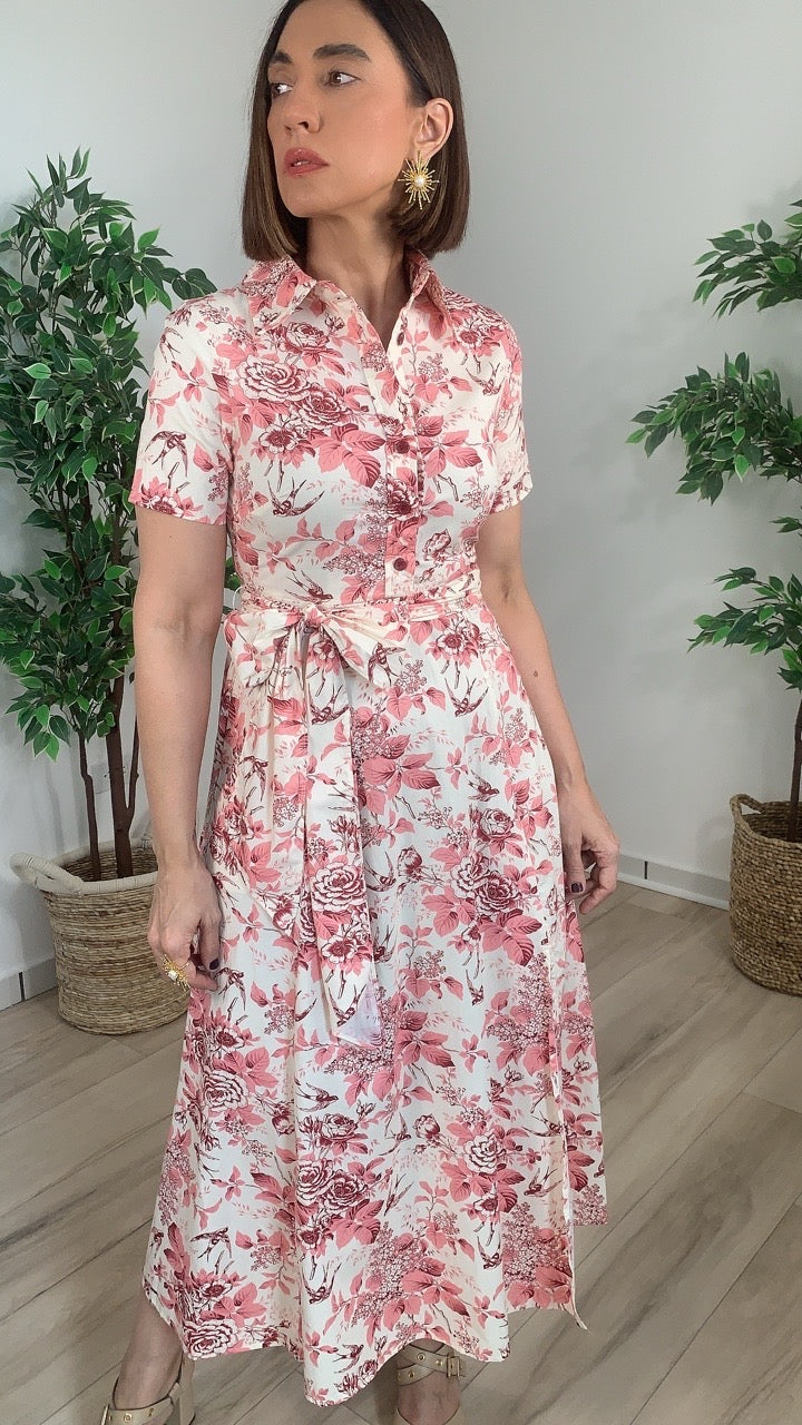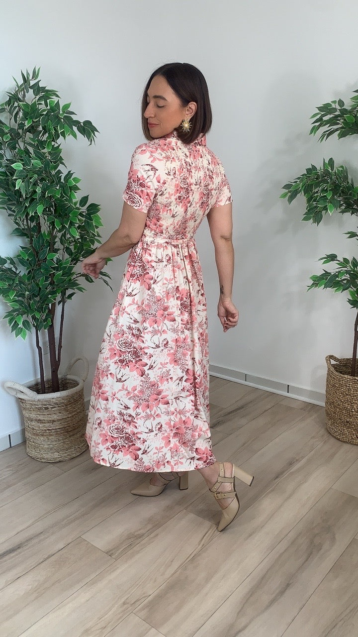 Discover effortless elegance with the Puro Midi, a stunning pink floral button-down dress designed for modern sophistication. Featuring a comfortable stretch fabric and a beautifully smocked back, this piece offers both style and flexibility for all-day wear. The self-tie detail adds a charming, personalized touch that elevates any occasion. Perfect for those seeking a versatile dress that combines feminine flair with practical comfort.